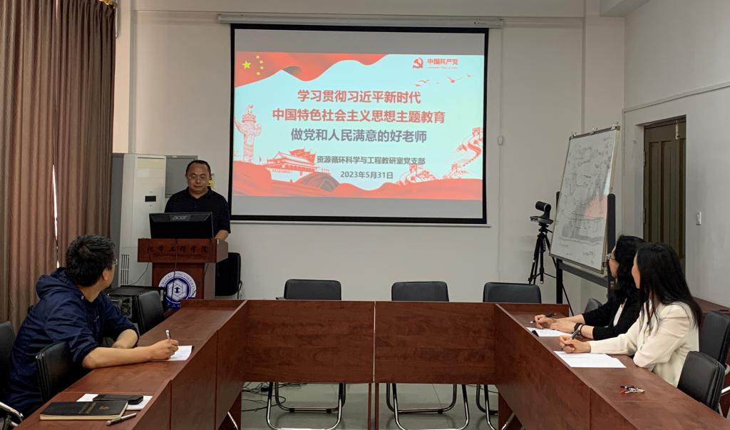 5月31日下午,资源循环科学与工程教研室党支部在鸣龙楼306室开展主题为“做党和人民满意的好老师”理论学习研讨。会议由支部书记郑强主持。