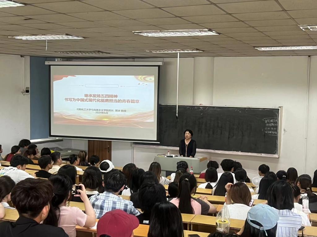 贾冰教授讲座的主题是《继承发扬五四精神书写为中国式现代化挺膺担当的青春篇章》。她深入阐释了五四精神的内涵和五四运动在中国近现代历史上的里程碑意义。贾冰指出,新时代青年要从三个方面继承和发扬五四精神,以民族复兴为己任、树立正确的理想和坚定的信念、为理想付诸行动。她鼓励同学们要求真好学,通过日积月累获得理论积淀,不断更新知识库、拓展认识面,练好真本领,积极投身中国式现代化建设的火热实践,在磨砺中锤炼自我、在斗争中强健筋骨,努力成长为可堪大用、能担重任的栋梁之才。