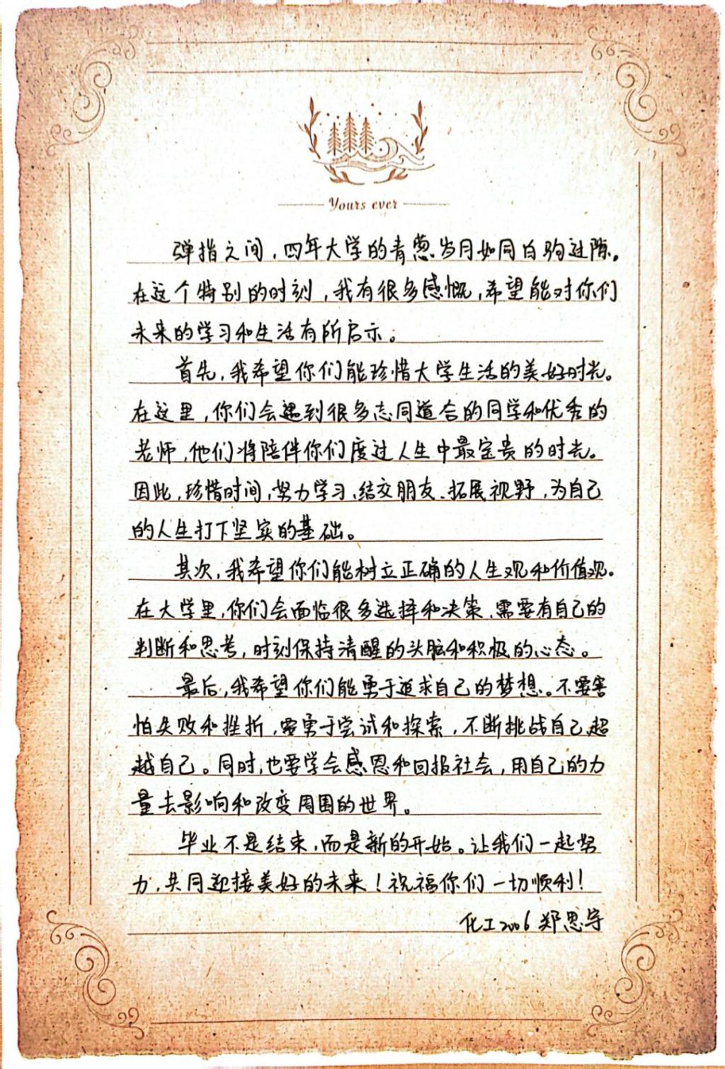山河远阔,满眼星河;青春梦想,扬帆远航。纸短情长,继以传承,yl6776永利集团2024届毕业学子用一封信的形式发来了他们的深情寄语......